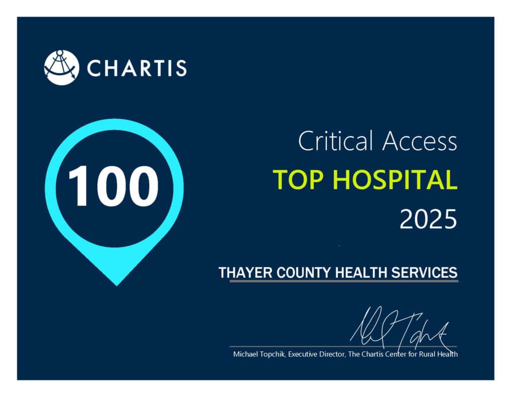 Apr 8 - Thayer County Health Services Recognized by Chartis as a Top 100 Critical Access Hospital