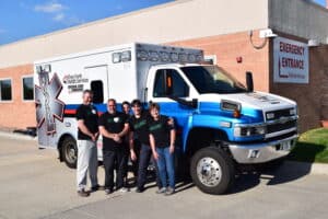 Our ambulance is outfitted with advanced medical equipment, including a Stryker LUCAS for automated CPR, infusion pumps, a transport ventilator, and a Zoll X Series® monitor with 12-lead EKG capabilities. This monitor also allows for wireless transmission of EKGs directly to receiving hospitals, ensuring continuity of care before the patient even arrives.